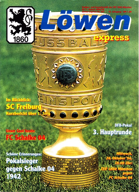 Nr. 7 / 26.10.94 Schalke 04DFB Pokal 3 Runde A4 20 Seiten1:2 nach Verlängerung
