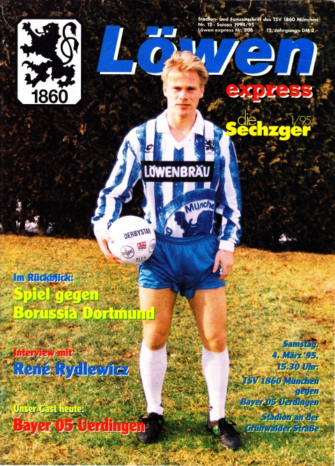 Nr.12 /04.03.95 Bayer Uerdingen1:1 / 56 Seiten A4inkl. Vereinszeitung 1/95