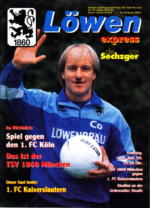 Nr. 19 / 10.06.95 Kaiserslautern1:3 / 64 Seiten A4inkl. Vereinszeitung 2/95