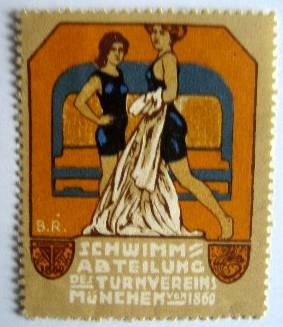 1900-1920 Reklamemarke/Vignette Schwimmabteilung Turnveein München von 1860 4x5 cm mit Gummierung