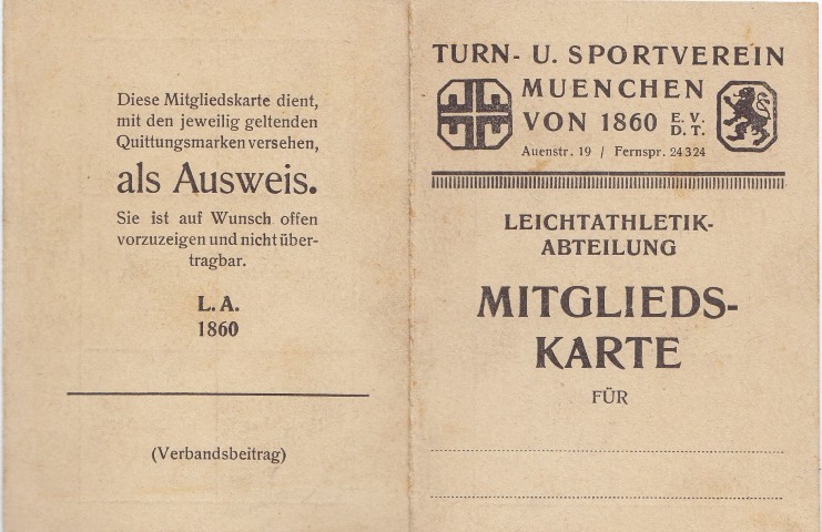 1923 - Mitgliedsausweis L.A. 1860