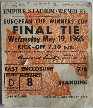 Eintrittskarte Endspiel 1965 West Ham - 1860 München
